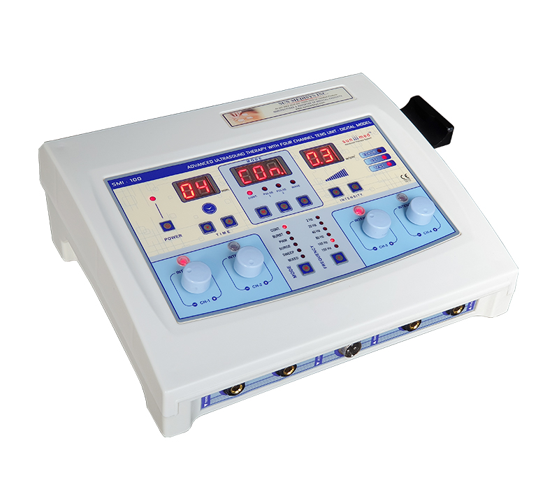 Dual-modality device combining 4-channel TENS with 1 MHz ultrasound—delivers efficient, customizable treatment for pain relief and tissue healing.
