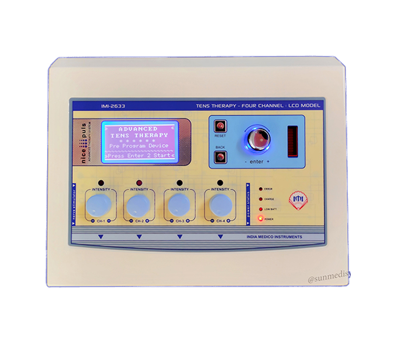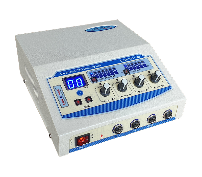 Premium 4-channel TENS unit with program memory, 180-min battery backup, and customizable settings—designed for high-volume, precision-based clinical therapy.